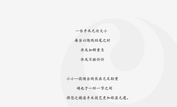 单线牌“可吸收性外科缝线”(内窥镜圈套线)是我公司于2000年在国内内窥镜手 术权威及医技培训导师刘衍民教授的指导下自主开发研制而成,该产品在2014年 取得了国家实用新型发明专利,填补了当时国内该类型产品的空白。目前,国内已有较多医院已采用手术线结扎技术从而避免使用闭合夹,使腹腔镜胆囊切除术在微创的基础上更加接近传统的操作方式,手术线的效果已经得到数百年的临床 验证。采用手术线打结,不仅降低了手术费用,更重要的是避免了体内留置那些 “现代材料”,因此将是腹腔镜胆囊切除术乃至其他腹腔镜手术发展的方向。单线牌“可吸收性外科缝线”(内窥镜圈套线)线体采用天然材质经湿纺工艺加工而 成,具有抗拉力强、生物相容性好、毒副作用小和打结牢固等优点。产品广泛适 用于内窥镜手术中对阑尾、子宫肌瘤、输卵管和其他外科肿瘤组织的结扎,临床 使用十余年反应良好,深受好评。