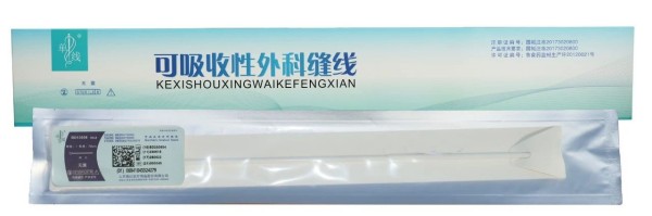 单线牌“可吸收性外科缝线”(内窥镜圈套线)是我公司于2000年在国内内窥镜手 术权威及医技培训导师刘衍民教授的指导下自主开发研制而成,该产品在2014年 取得了国家实用新型发明专利,填补了当时国内该类型产品的空白。目前,国内已有较多医院已采用手术线结扎技术从而避免使用闭合夹,使腹腔镜胆囊切除术在微创的基础上更加接近传统的操作方式,手术线的效果已经得到数百年的临床 验证。采用手术线打结,不仅降低了手术费用,更重要的是避免了体内留置那些 “现代材料”,因此将是腹腔镜胆囊切除术乃至其他腹腔镜手术发展的方向。单线牌“可吸收性外科缝线”(内窥镜圈套线)线体采用天然材质经湿纺工艺加工而 成,具有抗拉力强、生物相容性好、毒副作用小和打结牢固等优点。产品广泛适 用于内窥镜手术中对阑尾、子宫肌瘤、输卵管和其他外科肿瘤组织的结扎,临床 使用十余年反应良好,深受好评。