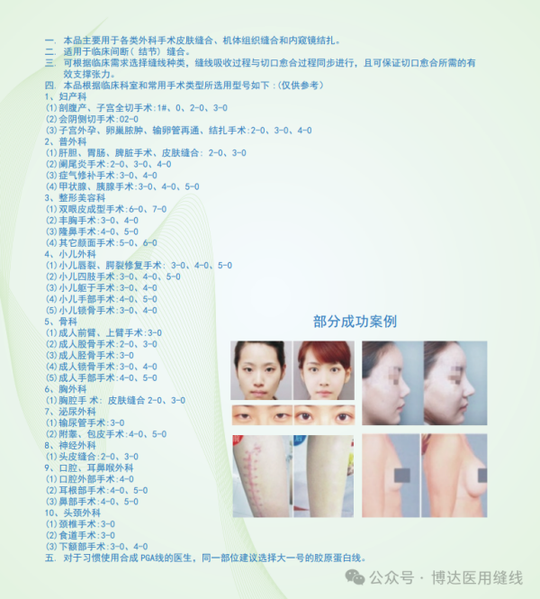安全性高 :由于胶原蛋白的特性,线体在手术浸泡过程中会产生膨胀,环扎紧密、不 易漏液,使打结更加牢固,医生操作灵活方便,得宜应手,线圈越拉越紧。